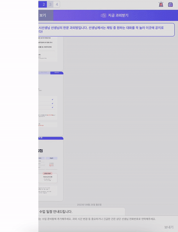 제출한 숙제는 과외방에서 확인할 수 있어요.