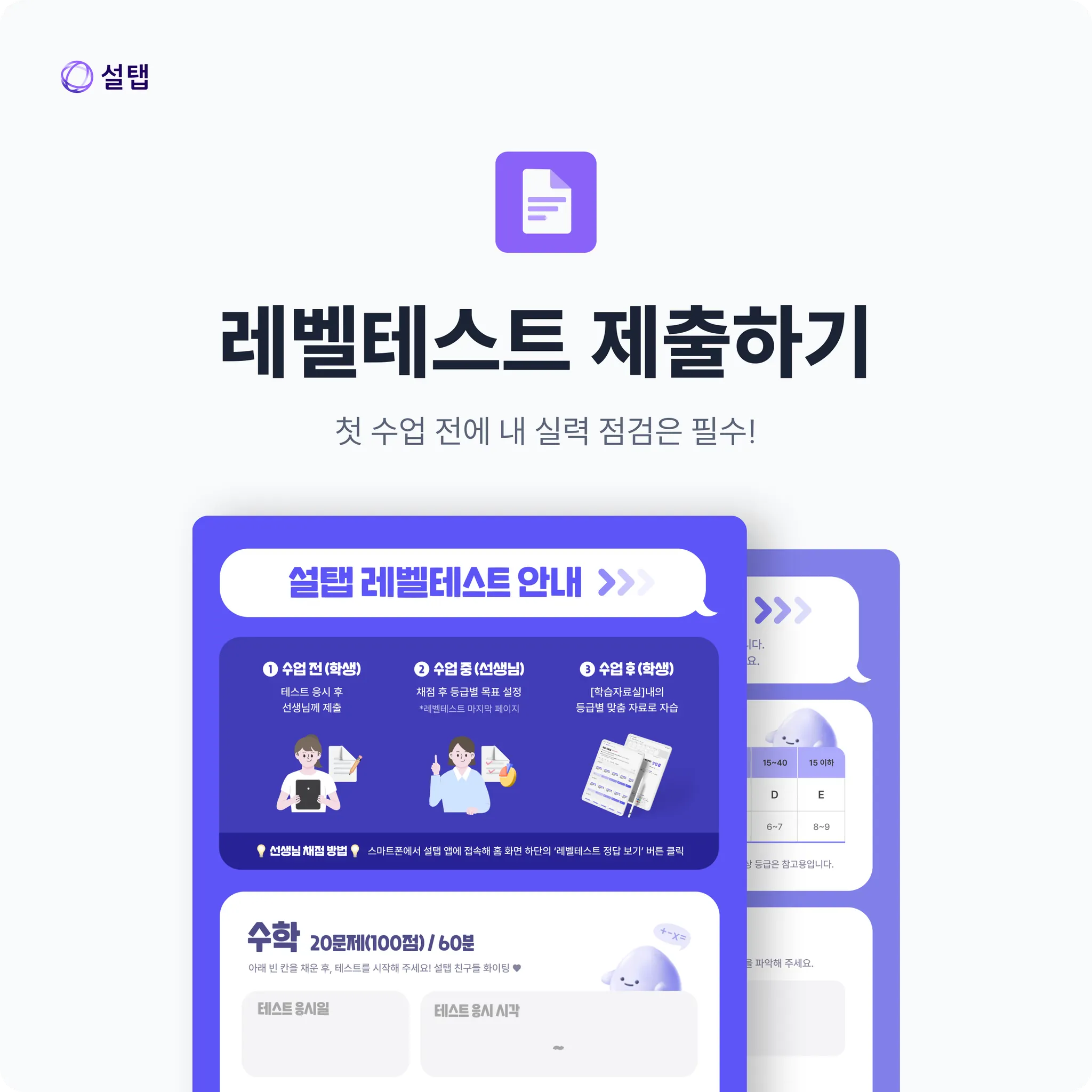 레벨테스트 결과를 통해서 학생의 실력을 정확하게 파악하고, 앞으로의 수업 계획을 세울 수 있어요!